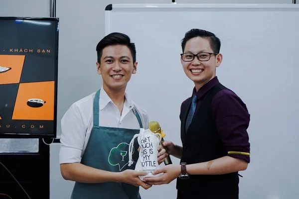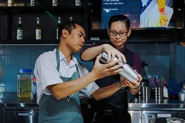 Giảng viên Tony Trần nhiệt tình hướng dẫn các bạn cách sử dụng bình Shaker