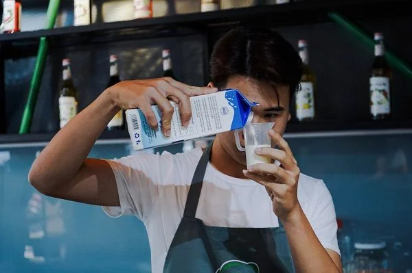 Bạn học sinh đang thực hành pha chế thức uống