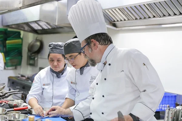 Phương pháp đào tạo theo mô hình bếp mở giúp học viên rèn luyện quy trình phối hợp làm việc giữa các bộ phận khác nhau tại NHKS.