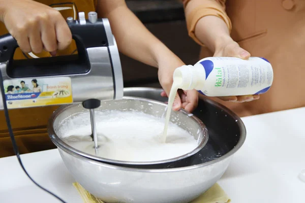 Học viên được thực hành làm sữa chua dưới sự hướng dẫn trực tiếp của giảng viên khi tham gia lớp học.