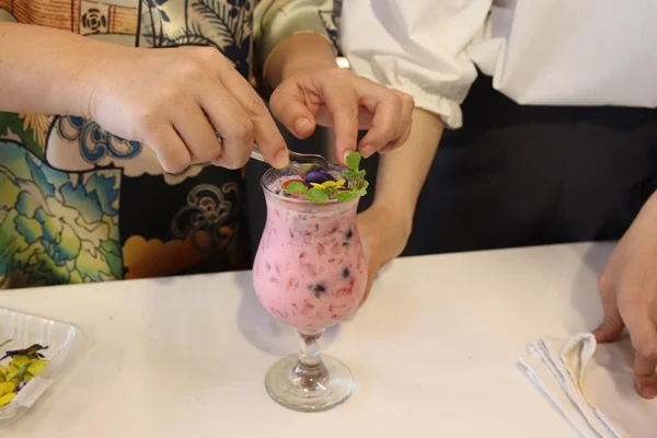 Chuyên đề sữa chua trân châu kết hợp cung cấp cách làm các loại topping như: trân châu nhiều màu từ các loại rau, củ, quả vừa đẹp mắt vừa tốt cho sức khỏe, thạch cơm dừa béo, xốt cốt dừa thơm. Bằng cách kết hợp linh hoạt các loại topping này với sữa chua, học viên không chỉ làm thành công sữa chua trân châu cốt dừa đang gây “sốt” mà còn tạo ra nhiều món ăn để làm mới thực đơn, thu hút khách. Ngoài ra, học viên được hướng dẫn công thức làm kem sữa chua, cách trang trí kem thành phẩm giúp tăng giá trị và hương vị món ăn.