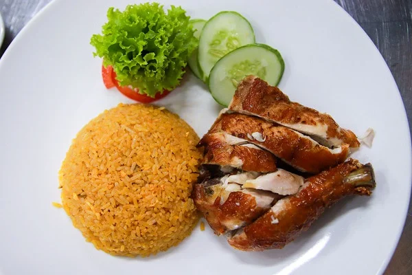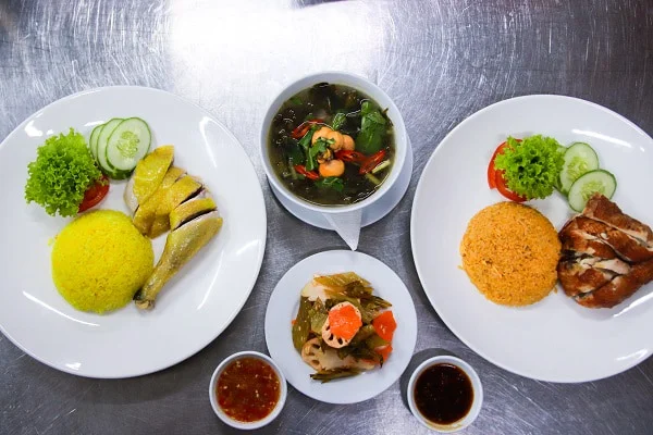 Cơm gà Hải Nam với hạt cơm mềm thơm ăn cùng thịt gà chấm nước xốt rất ngon