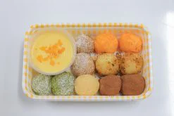 - Hướng dẫn thực hành mochi 5 vị: đậu nành, cacao, matcha, vị trà, vị trứng muối chà bông mặn.
