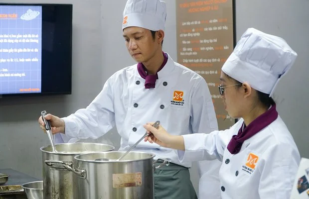 Tùy theo định hướng phát triển tương lai với nghề bếp chuyên nghiệp, bạn có thể lựa chọn hệ đào tạo Tiêu chuẩn hoặc Liên kết quốc tế. Hệ đào tạo Liên kết quốc tế bao gồm khối kiến thức chuyên ngành của khóa Nghiệp Vụ Bếp Trưởng Bếp Âu và học phần Liên Thông Quốc Tế giúp bạn hoàn thiện kiến thức chuyên môn, kỹ năng, nghiệp vụ và tiếng Anh để tự tin phát triển sự nghiệp trong tương lai.