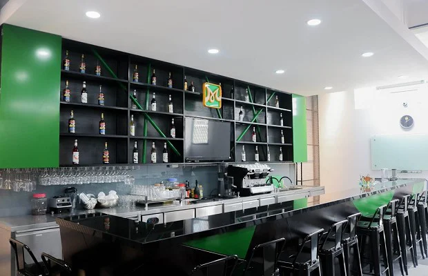 Phòng học thực hành pha chế tại Hướng Nghiệp Á Âu được xây dựng vừa đảm bảo quy định vừa đưa không gian làm việc đẳng cấp 4 sao, 5 sao đến gần hơn với học viên. Trang thiết bị, dụng cụ và nguyên liệu luôn được chuẩn bị sẵn sàng tại lớp học để đảm bảo 90% thời gian thực hành luôn hiệu quả, không bị gián đoạn. Các loại máy rang, máy xay, máy pha cà phê, máy ép chậm,… và nhiều dụng cụ pha chế chuyên nghiệp như shaker, jigger, bar spoons,… tại lớp học đều là loại được đông đảo thương hiệu thức uống lớn tin dùng. Tất cả giúp học viên nhanh chóng quen việc khi bước vào làm việc thực tế.