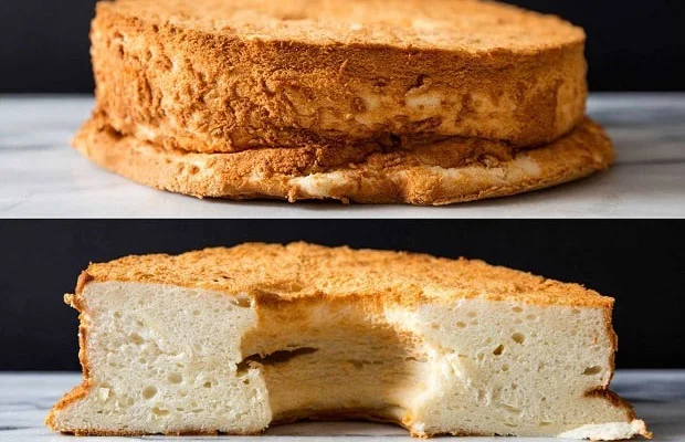 Bánh bông lan sau khi nướng bị lõm mặt (Ảnh: Internet)