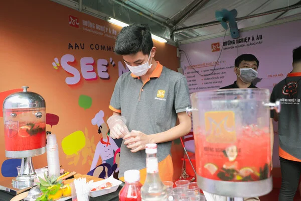 Hàng trăm bạn học sinh ghé thăm và thưởng thức món soda trái cây của Hướng Nghiệp Á Âu