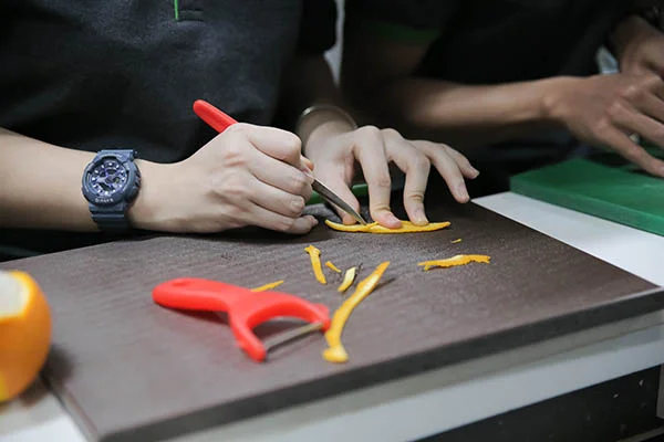 Các bạn được học cách chiết xuất tinh dầu vỏ cam vừa đủ để tạo hương nhưng không làm thức uống bị đắng