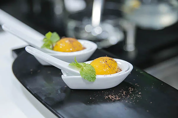 Ở phần thực hành ứng dụng ẩm thực phân tử, các bạn sẽ được giảng viên hướng dẫn kỹ lưỡng phương pháp spherification và tạo foam. Để thực hiện kỹ thuật spherification thành công, bạn phải có công thức của sodium alginate và nước tinh khiết. Buổi học sẽ giúp bạn có được tỷ lệ nguyên liệu chính xác để làm đặc, tạo cấu trúc ổn định cho thành phẩm. Khi thưởng thức sẽ tạo ra trải nghiệm độc đáo, táo bạo nhất cho vị giác.