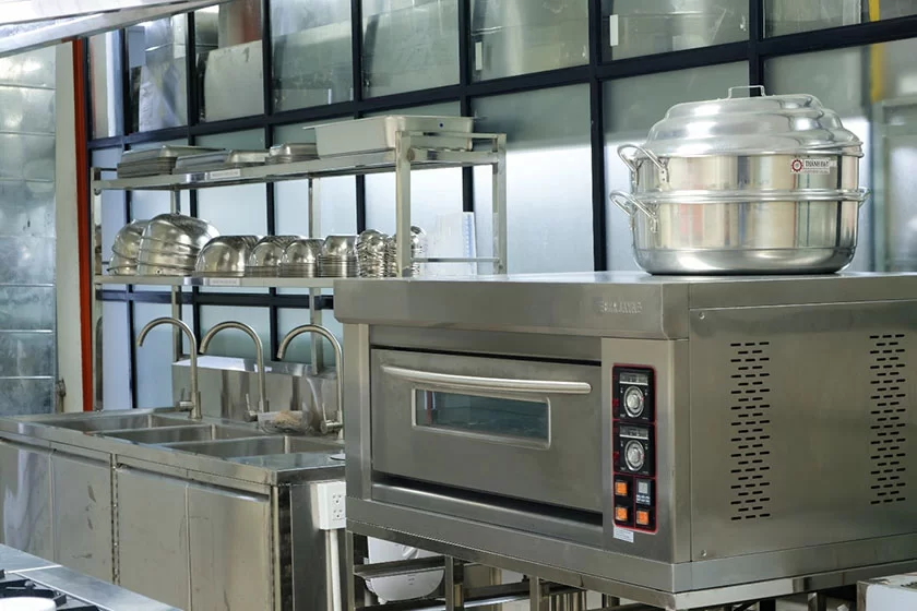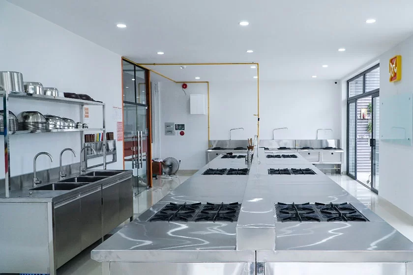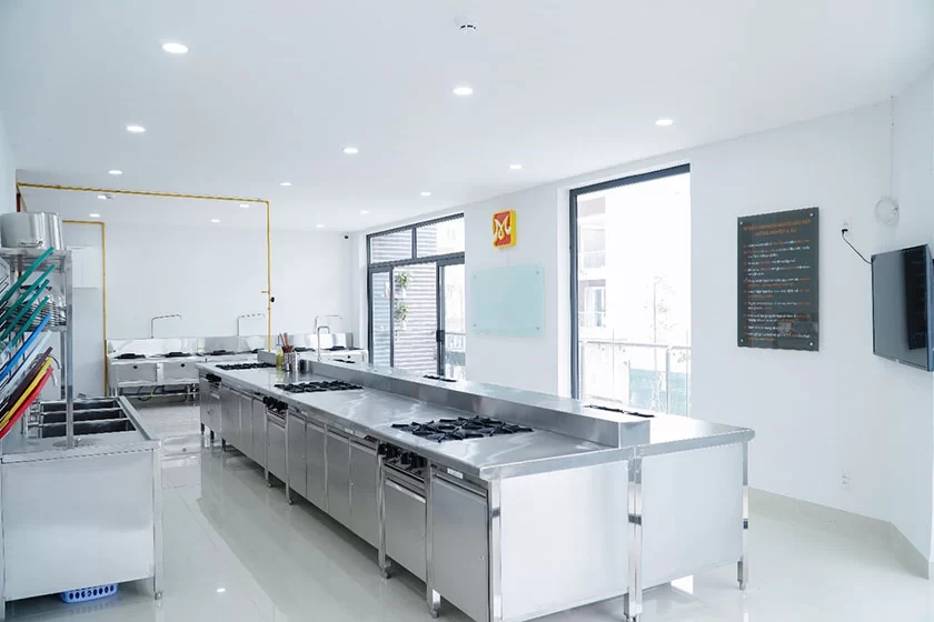 Đào tạo theo mô hình bếp mở: Học viên được rèn luyện trong môi trường bếp mở hiện đại, sát thực tế bếp ăn tập thể.