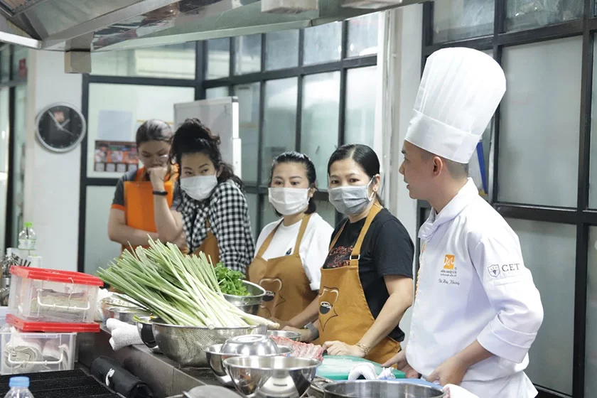 - Trang bị nền tảng toàn diện: Không chỉ nấu ăn, học viên còn được học kỹ năng mềm, tư duy làm nghề và kiến thức quản lý bếp ăn tập thể.