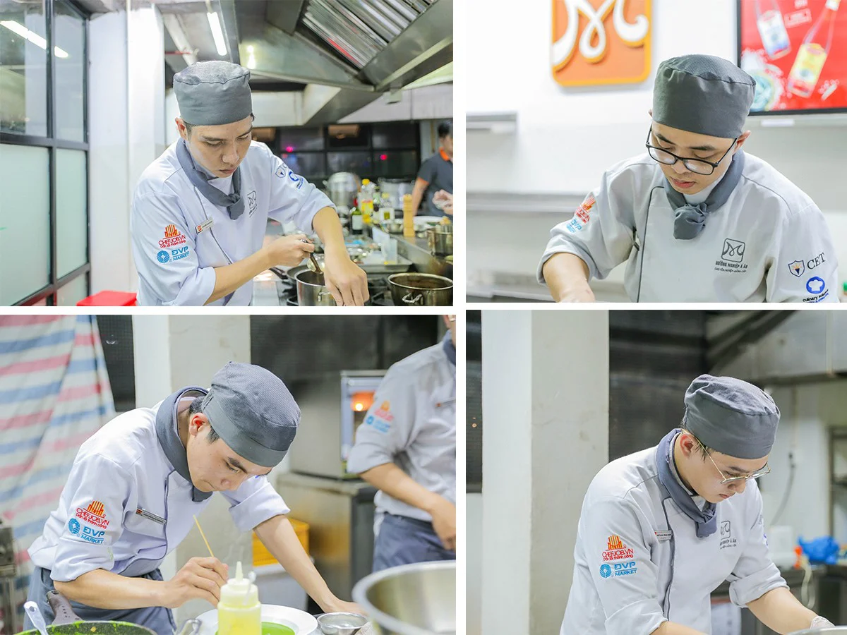 Một bài thi tốt, không chỉ dừng lại ở hương vị, hình thức món ăn mà còn được chấm dựa trên rất nhiều yếu tố như thời gian, nhiệt độ khi phục vụ, khu vực làm việc, thao tác, kỹ năng trong quá trình chế biến… Không ít những giọt mồ hôi đã rơi, không ít những lần thất bại phải bỏ đi làm lại từ đầu, không ít những tình huống bất ngờ xảy ra trong lúc chế biến… nhưng với bản lĩnh của chính mình các bạn đã vượt qua. Khoảnh khắc ngắm nhìn set menu của mình hoàn thành sẽ luôn là kỷ niệm đáng giá, đánh dấu việc bạn đang dần lớn lên trong tay nghề và tác phong làm việc.