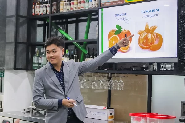 - Hoàn thành khóa học, học viên có nền tảng tiếng Anh trong ngành Pha chế, nắm được các mẫu câu giao tiếp thông dụng, kỹ năng xử lý tình huống và các nguyên tắc khi giao tiếp với khách hàng…