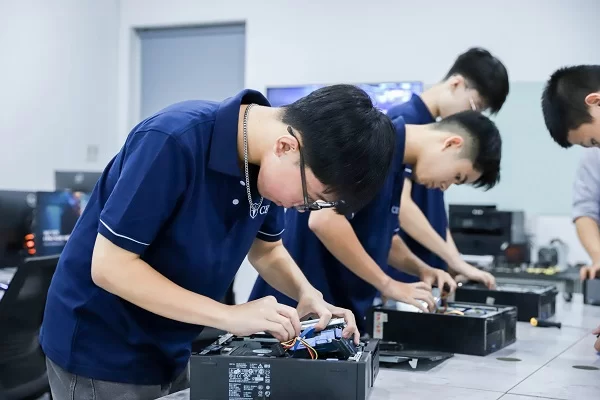 Nhà trường cũng đầu tư, trang bị đầy đủ các thiết bị như máy chiếu, bảng trắng, màn hình LCD… cho các phòng học lý thuyết nhằm tạo nên môi trường học tập tiện nghi, chất lượng, tạo điều kiện tối đa để sinh viên phát triển kỹ năng và trở thành những nhân sự vững tay nghề.